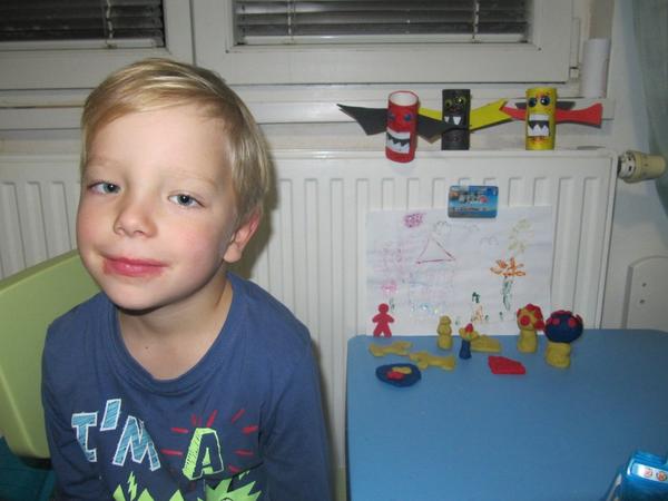Samík (4 roky) a Hanozík (2 roky) vytvořili svoji hlavinku s tím, co mají rádi (co jim vykouzlí na tváři úsměv).