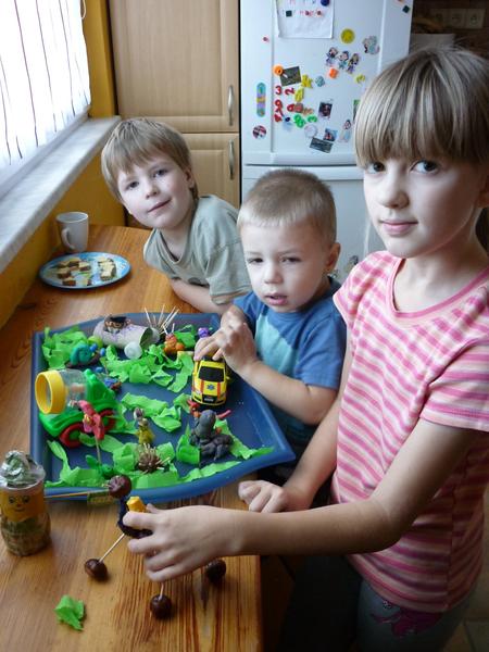 My skoro celý den lítali po Moravě. K doktorovi do Olomouce, k babičce do Valašského Meziříčí a pak hurá domů do Brna. Tak už nám nezbylo moc času na výrobu. Ale ještě před spaním jsme si stihli pohrát a udělat i my alespoň malou zahradu. A zapojily se obě děti. Terezka se s bráškou podělila i o svou milovanou berušku 🙂