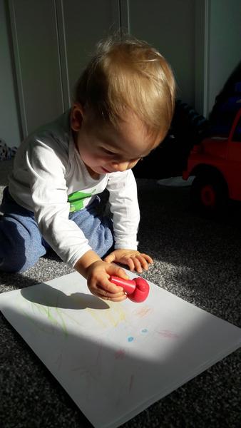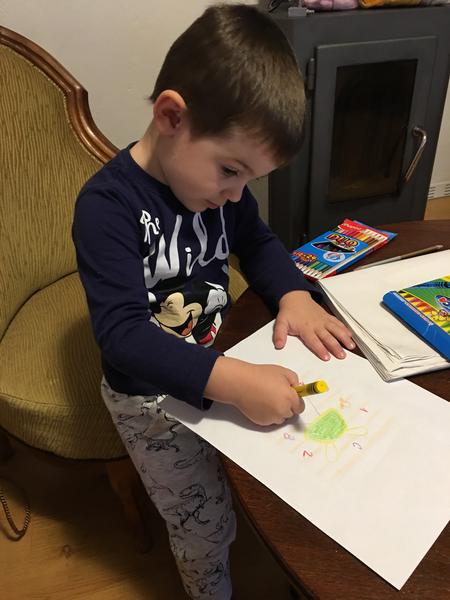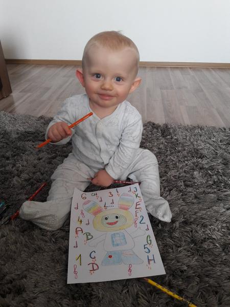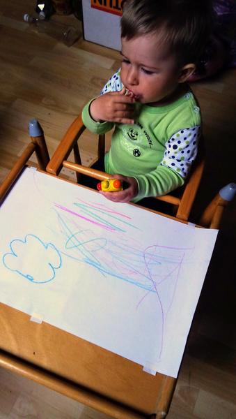 Synovi bude teprve rok, takze s pastelku maximalne ocuca. I kdyz kdybych to nakreslila ja, mozna by to bylo jako od maleho ditka 😀