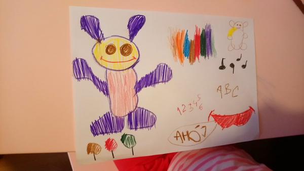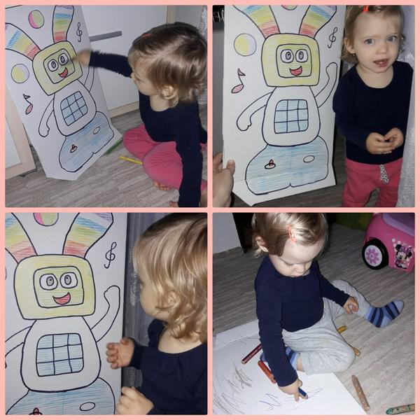 My jsme si s BeatBo užily celé dopoledne🙂 Nejdříve jsme ho kreslily, dcerka, Leontýnka pak dílo dotvořila👏Na úsměvy je skromná, zato ho ale objala, dala mu pusinku, pak si s ním zatančila a nakonec pozvala k tanci i pejska, aby mu to nebylo líto😍 I na rostoucí zoubky nakonec zapomněla🙂
