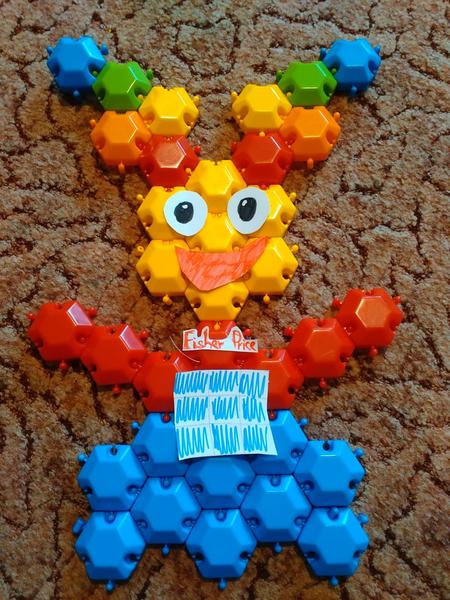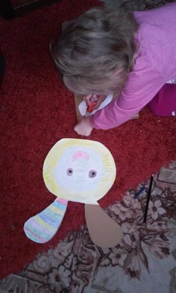 Tvoření nas zabavilo cele dopoledne, prstovymi barvami sme natapaly houbičkami na papír, nechaly zaschnout a pak výstřihly a tvorily. Takhle si moje dcerka představuje vašeho fesaka od Fisher Price 😍