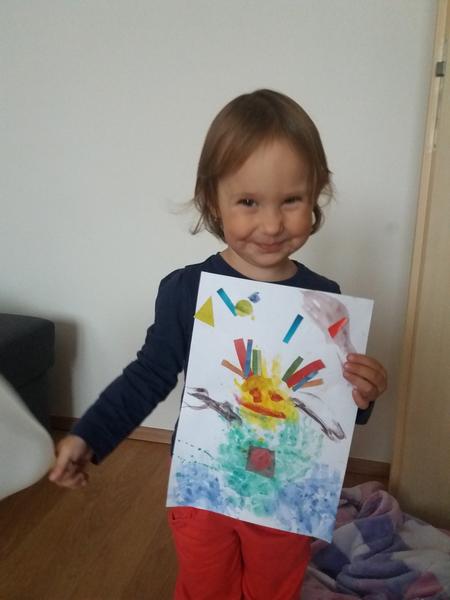 Tak naše Anežka (2,5roku) využila vše možné vytvarné techniky,aby Beat bo ztvarnila...ale holka v tom má jasno. Na otázku a proč bys to měla vyhrát právě ty? Odpověděla: ,,BO"!...Ostraváci jistě rozumí 😉