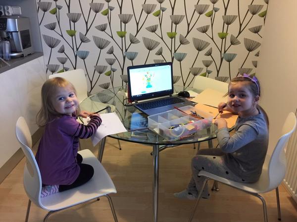 Tak takhle se kreslilo u nás. Starší dcerka se do toho pustila na plno, její mladší ségra dělala dozor z ředitelskeho můstku 🙂
