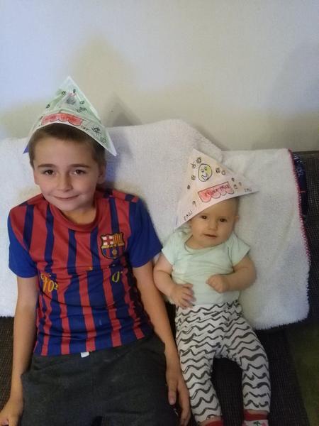 Mami udelali sme s Davidkem cepici tak ji vyfot at vyhrajeme. Nechteli pozovat tak musel plysak. Ukol splnen 👍