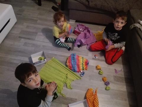 Kluci přišli ze školky a nápad na výrobu čepic se jim líbil a užili si ho :D naše čepice jsou hravé a barevné jako hračky Fisher Price 👏