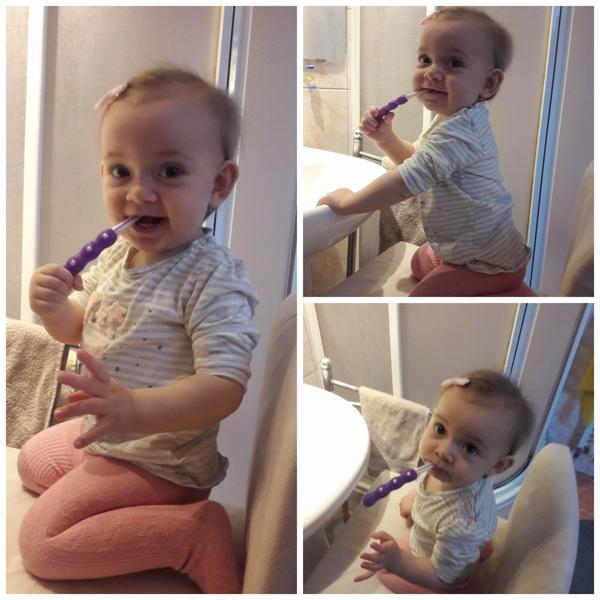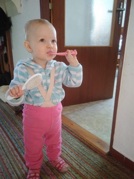 Natálka jako práva dama ráno cese vlásky a umyva se. Nejraději si čistí zoubky a kdyby mohla čistí si je celý den 😂😂😂.