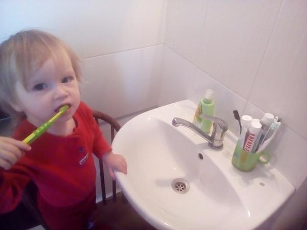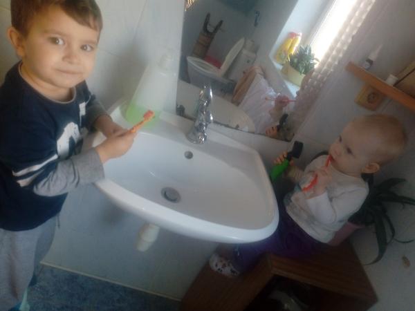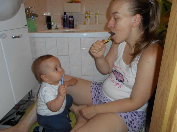 U nás se zuby čistí několikrát denně. Vždy, když jdeme do koupelny, tak to je: "Mami, prosím, zuby." 😀