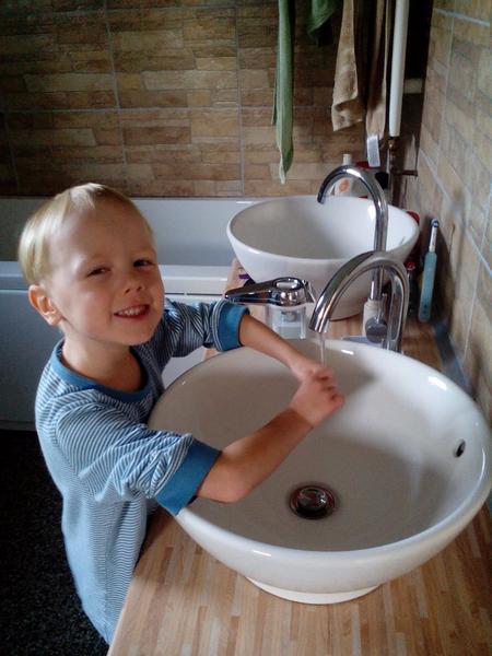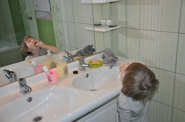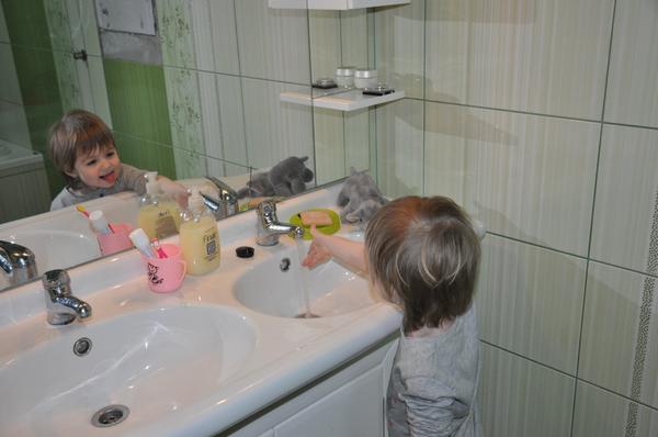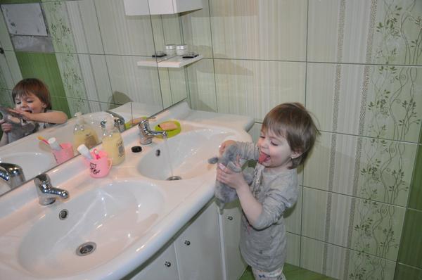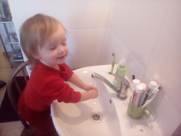 Dcera je tryskomyš, u umyvadla nevydrží, za to zvládá multitasking 🙂.