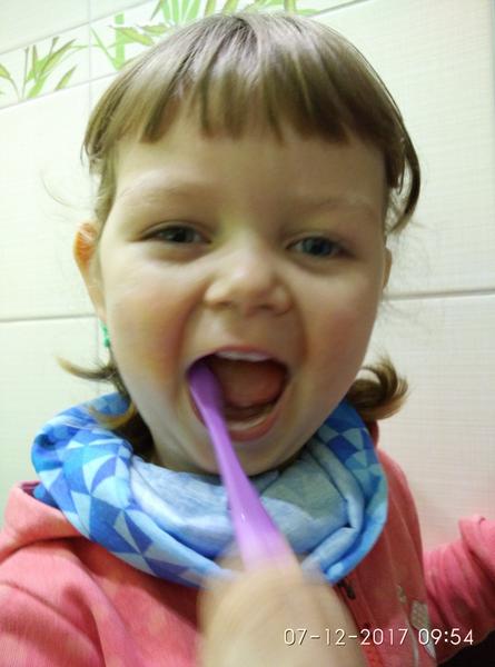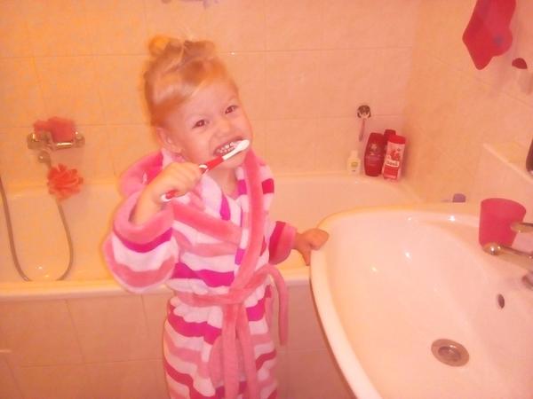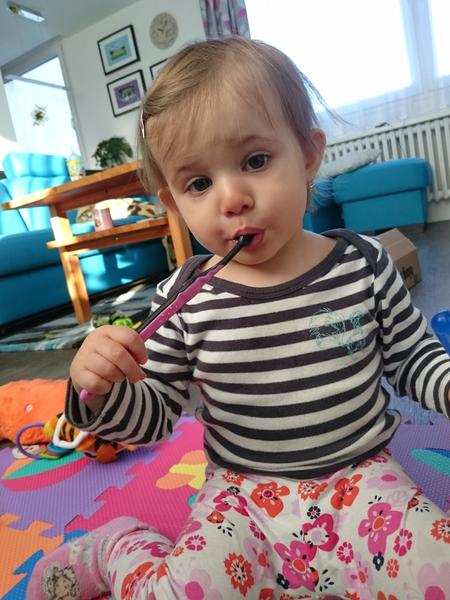 Dcera si ráda čistí zoubky. Pastu má moc ráda i když jí pořád říkám, že ji musí vyplivnout!!!