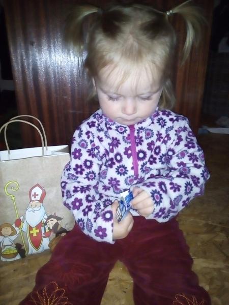 No pomalu se chystáme. Ráno jsme sice byli na mimimikulasske v mateřském centru, ale tam to bylo spíše ó soutezich, tancování a různých hrách. Teď máme s kamarádkama pronajatou hernicky, kam za náma přijdou hodni čertíci, Mikuláš a Andílek. A nadílka, převážně ovoce, oříšky, rozinky a sušené svestky ty Malej miluje. A má tam taky jednoho čoko Mikuláše.