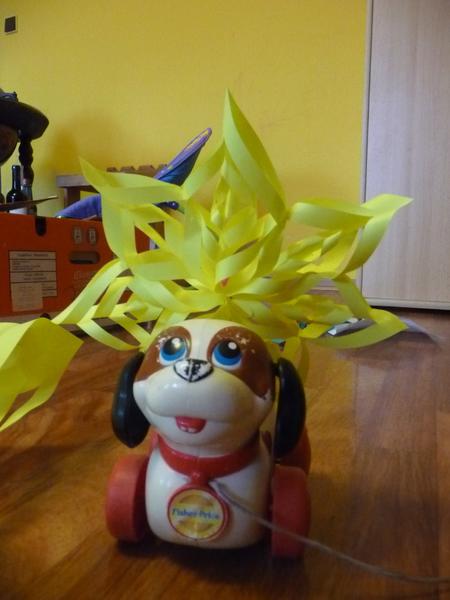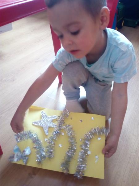 už jsem si myslela, že to nestihneme, dcerka podávala paírky, lepila a bohužel se nám lepdilo několikrát zatoulalo, ale nakonec máme taky hotovo 🙂 Hvězdičku pro Andílka a i hvězdičku na okno, aby nás Andílek našel, na všechno dohlížel náš fisher price stařičký pejsek 🙂 Který patří mezi dcerčiny nejoblíbenější hračky.