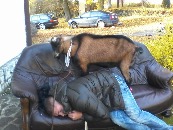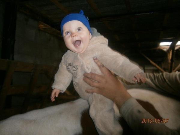 Teď momentálně kozlík, kachny, králíci, psi a krávy. 🙂 Přikládám fotku jeho nejoblíbenějšího kůzlete, kachny a králíka. Pak ještě krávy a jejich drbátka a pro pobavení jak to vypadá když kozel uteče k sousedům. 😀