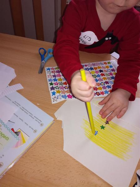 Tak lepidlo, vatu, knoflíky, pastelky...... a huráááááá, jde se tvořit.
