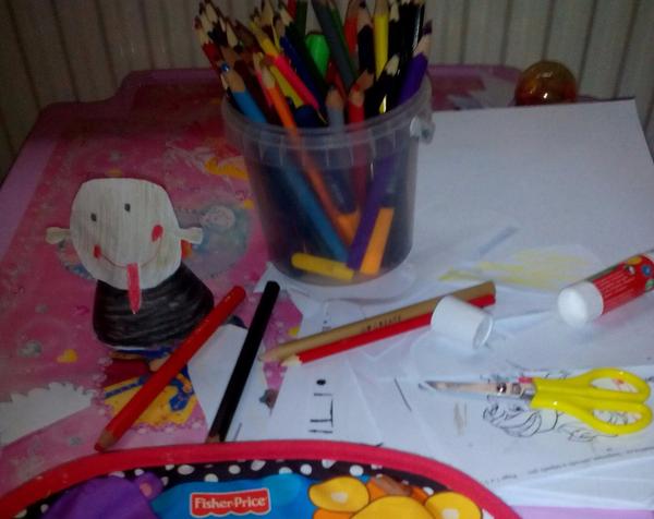 Tak lepidlo, vatu, knoflíky, pastelky...... a huráááááá, jde se tvořit.