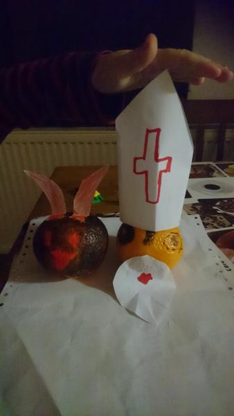 Tak jsme si také zablbli. A celá kuchyně (a to doslova) byla rázem plná Mikulášského tria. 😊 Starší dcerka take slušivě trojici oblékla, mladší se na nás při výrobě čertovsky smála. 🙂 Děkujeme za pestré odpoledne. 😊