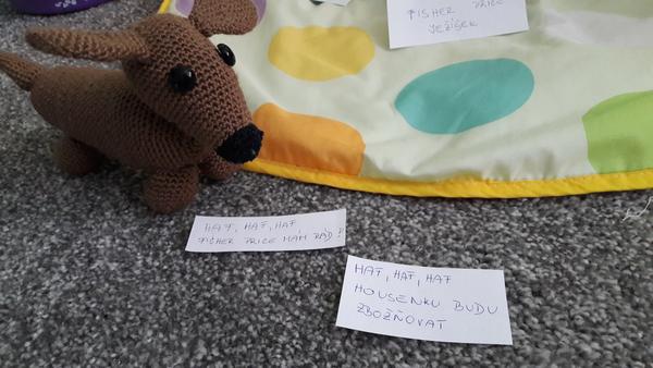 Výhry: 2 nejzdařilejší příspěvky odměníme HOUSENKOU od Fisher Price😅.