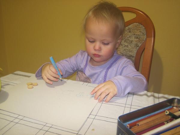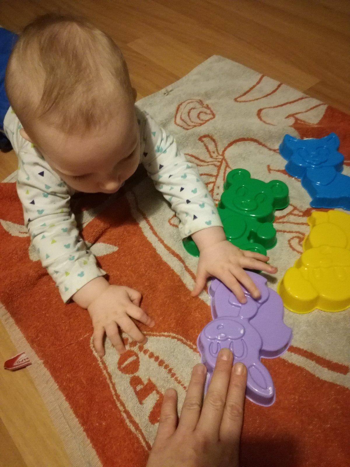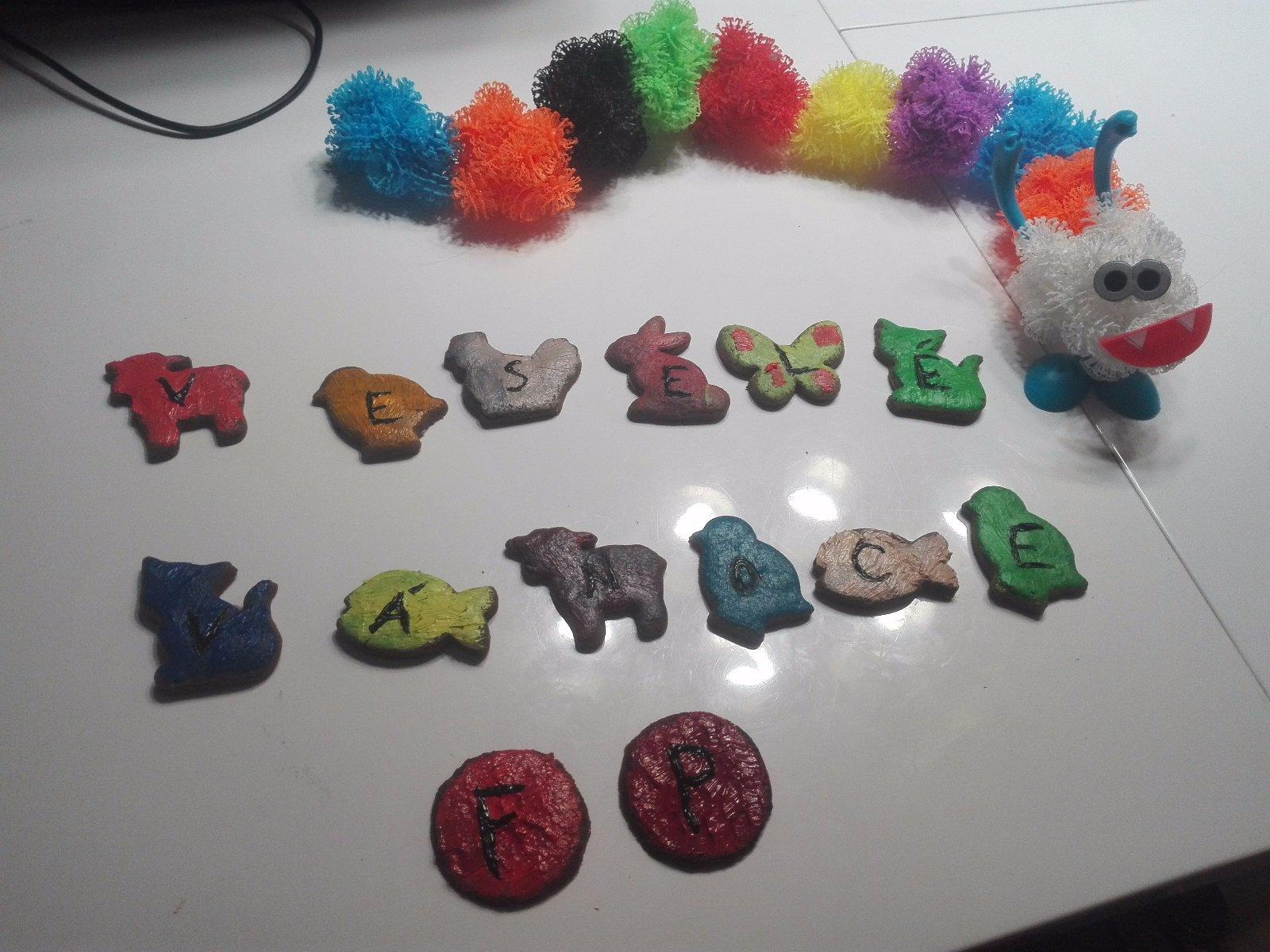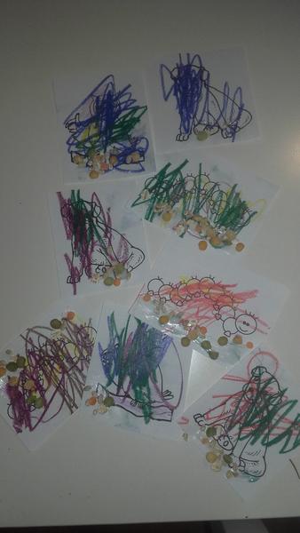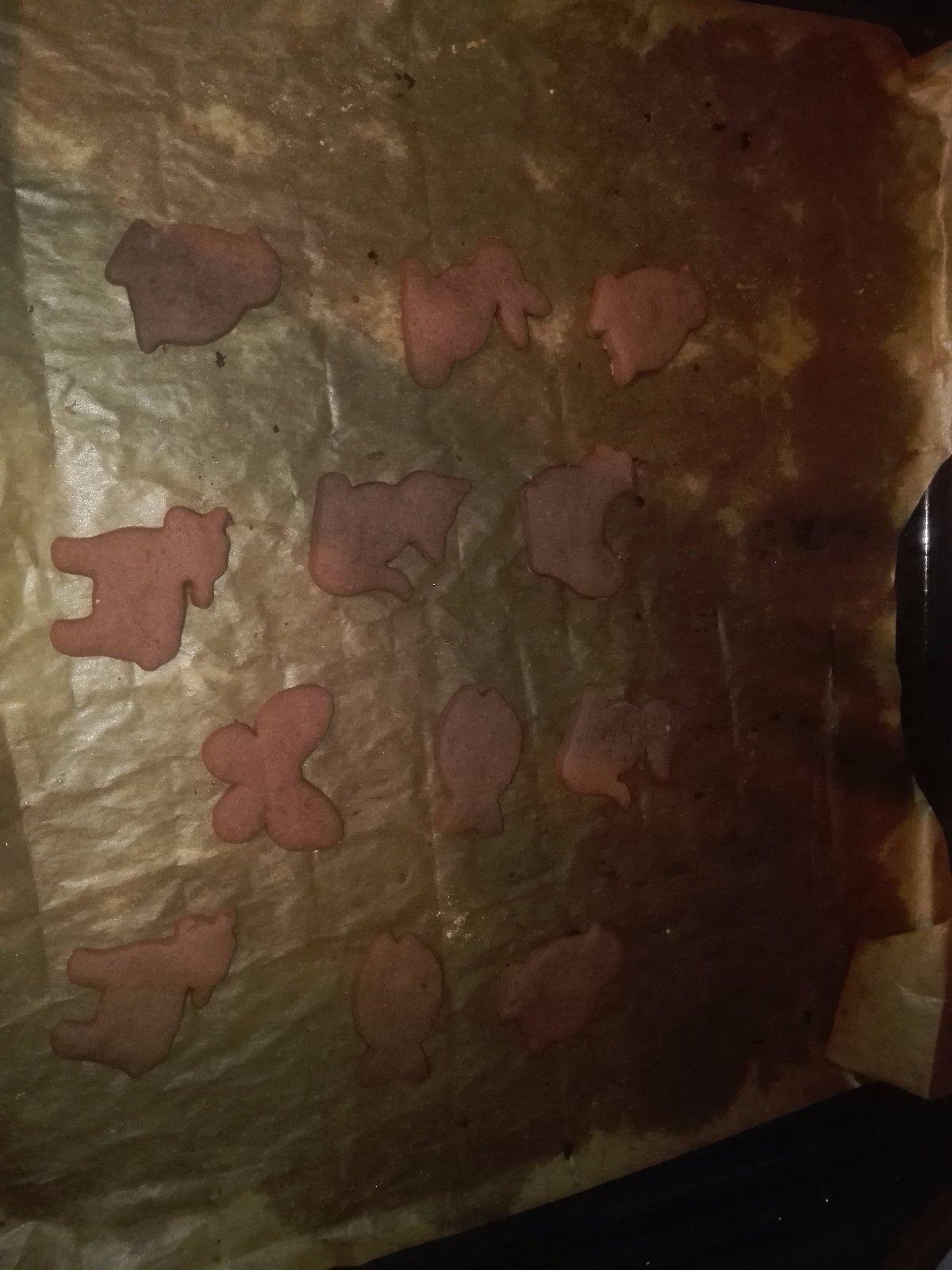 K ozdobám - jsou barveny potravinářskou barvou - výběr barev měla v režii nika (Zelená, modrá, fialová - mix) a vykrajovátka si taky vybírala... Nejvíc ji bavil žralok a kačka. Než se ozdoby usušily v troubě, tak si Nika s Péťou vybarvovali na folii postavičky, nutno dodat, že tohle je super pro děti - mám radost, že pochopila i na tom malém obrázku, že by se tam tak nějak měla s tou barvou vejít :D Překvapením bylo, že poznala BeatBoa 🙂a pořád o něm mluvila.