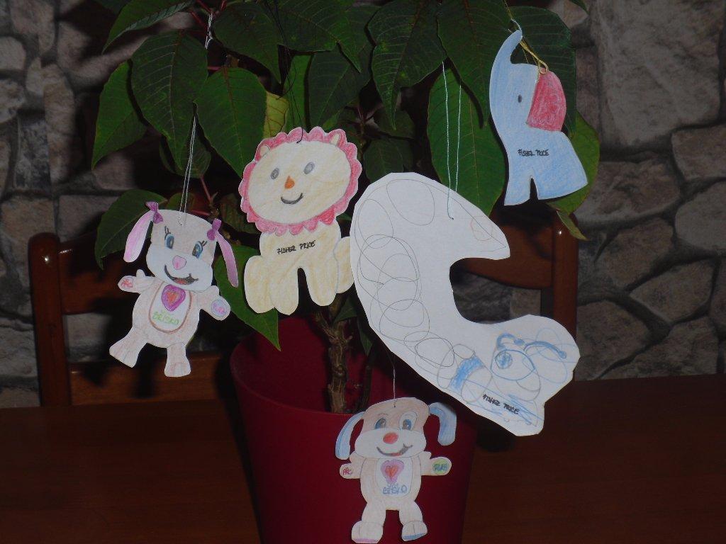 Naší výzdobu tvoří kamarádi z Fisher Price - Pan Beatbo, dále oblíbený pejsek, s pejskovým pianem , a samozřejmě nesmí chybět madam housenka (na obrázku mi chybí písmeno U 🙈, tak jsme ji přejmenovaly na Hosenku 😀😬). Povšimněte si , ze pan Pejsek vánočně ladí - ma na hlavě hvězdu , taktéž nase madam Hosenka vzhlíží ke stromečku 🙂))