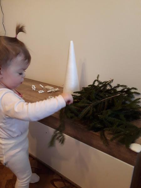 S malou pomocnicí práce odsýpala , byla to opět velká zábava . A malá pomocnice vyrobila ozdůbky z mandarinkové kůry (na větvičce dole ) , nejen , ze dělají paradu , ale hlavně naaadherne vonííí 😍