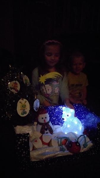 Tak i my jsme konečně dotvořili, bylo to náročné, ale výsledek je nádherný. Nejdřív jsme vyrazili na procházku na větvičky, ze kterých jsme vytvořili stromeček, pak polepovali krabici a vystřihovali, pak jsme dělali ozdoby - teda ty dělal Mireček. S Míšou jsme vymysleli stonožku, že si jí uděláme z ovoce a pak si na ní ještě pochutnáme a uděláme si nakonec ovocný salát 🙂. No a Táta dělal kometu, takže se také zapojil 🙂 A teď už si s tím hrají jak na světle tak i když se světlo zhasne. Míša prohlásila, že tohle musí k ní do pokojíku, protože je to boží, jen teda prý škoda, že tu stonožku sníme, ale že kdyby vyhrála, tak by stonožka měla rovnou i pelíšek 🙂 Tak si držíme, co můžeme, i když ostatní výrobky jsou také nádherné.