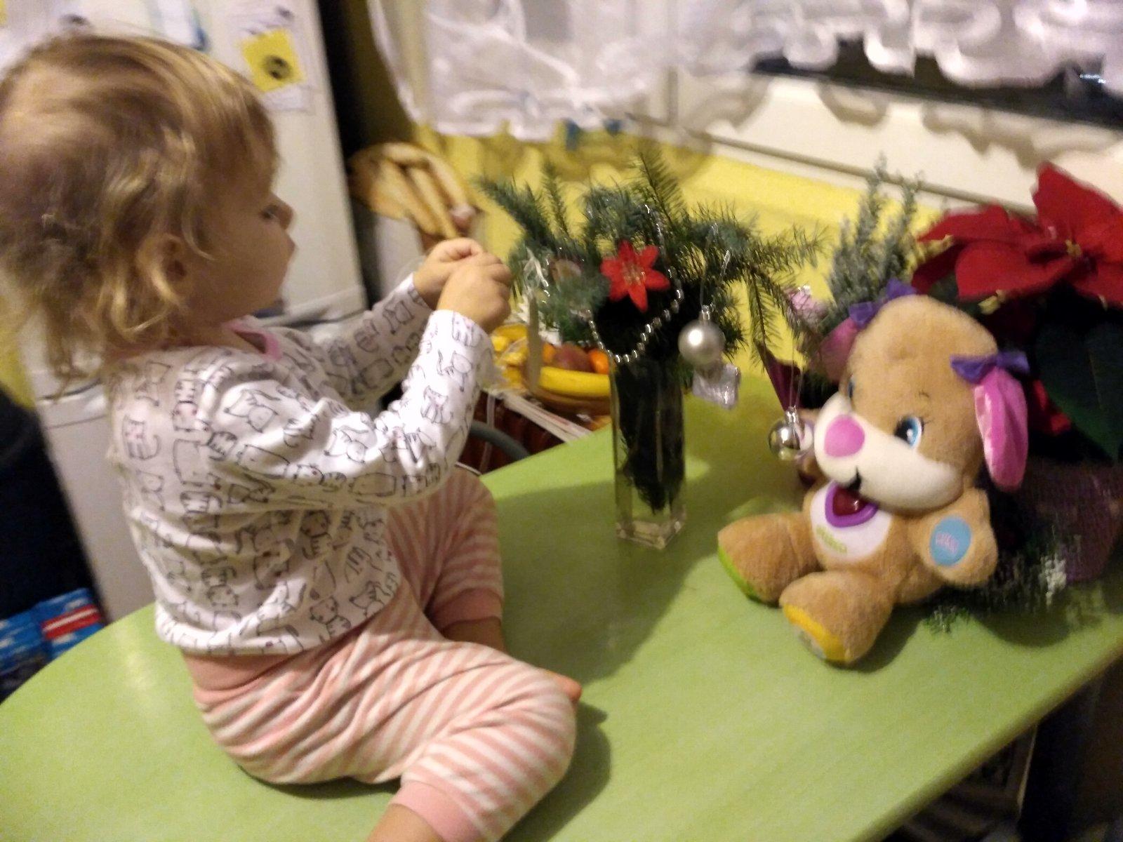 U nas dnes velka improvizace. Alenka je nemocna, ma horecky, tak nemuzeme ven a aloe je jedina prirodnina, která snesla nase zdobeni. Nemame bohuzel nikoho, kdo by dosel pro chvoji.