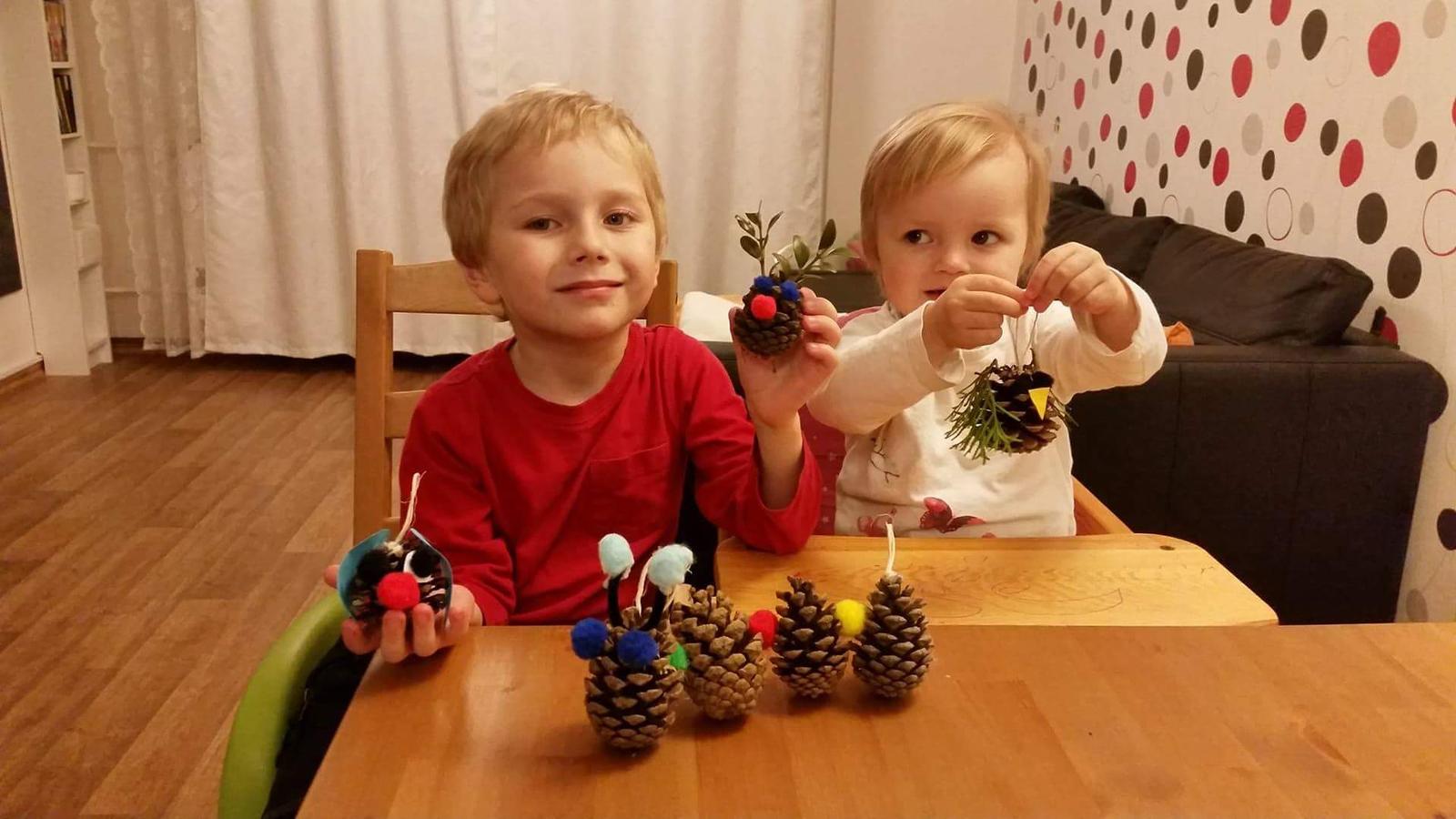 Máme rádi podzimní výzdobu co nejdéle. Vánočně zdobíme až 23. prosince. Materiál nebylo těžké sehnat. Starší syn nosí neustále domů klacky, kaštany, šišky, kameny atd. Takže syn se podílel na sběru materiálu, babička vytvořila věnec (já jsem na tohle levá) a o housenku jsem se pokusila sama. Syn prohlásil, že jsem mu zničila kaštany 😀 Tak snad to ocení někdo jiný.