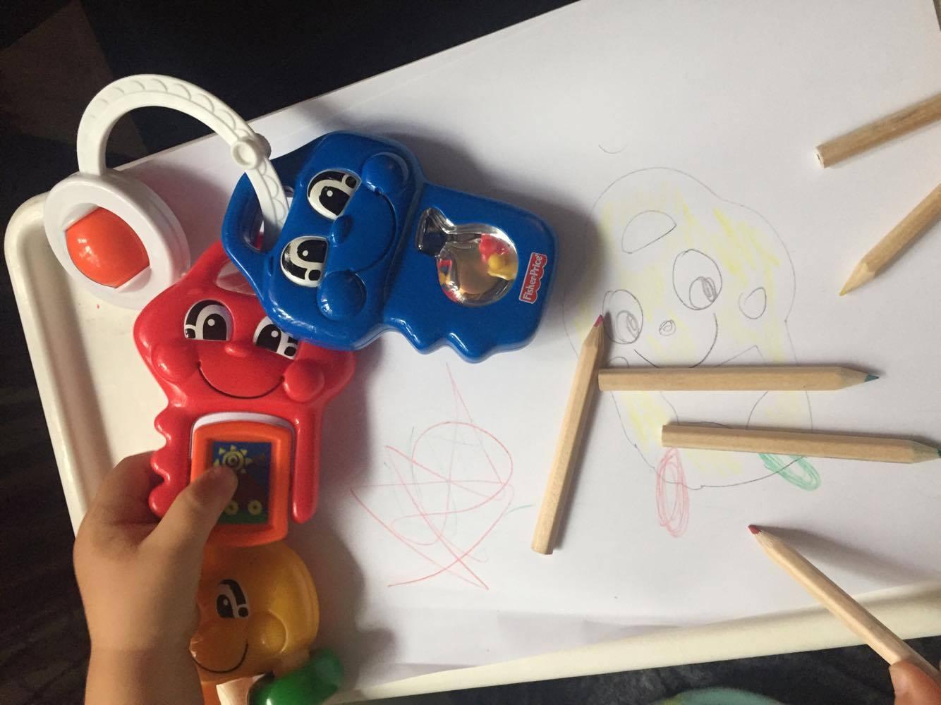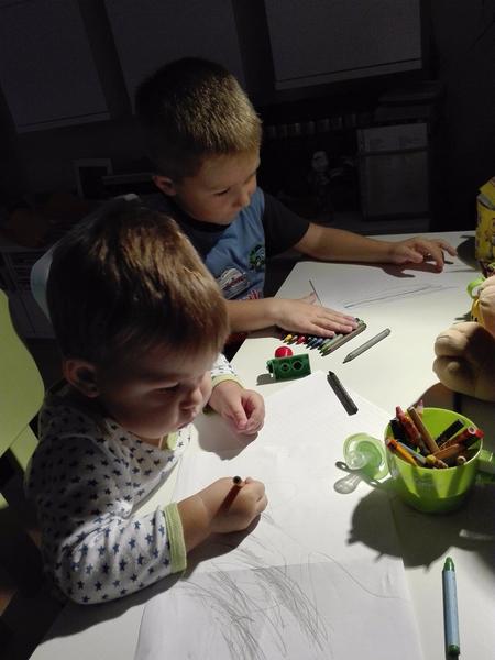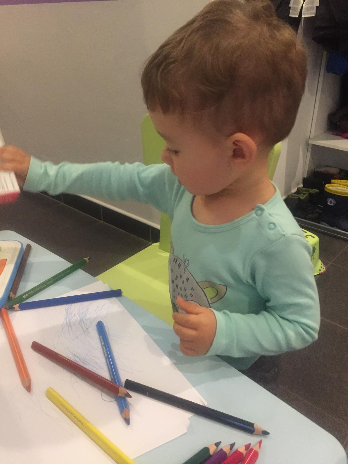 Syn (skoro 4) na malování moc není, ale rád si pastelky různě skládá a přerovnává.