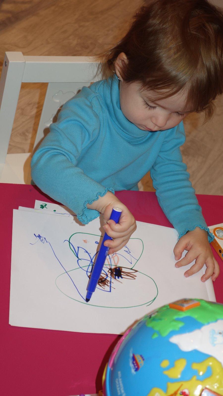 Naše Anežka za měsíc a půl oslaví své druhé narozeniny. Malujeme každý den a obě nás to moc baví. Děkujeme za soutěž a nápad, co malovat 🙂. Vyhrál oblíbený globus.