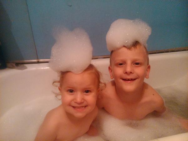 U nás je koupání občas bojovka, neb vana začíná být malá. Na dlouhou dobu se ustálilo koupání syna s tátou a spoustou hraček (resp. prázdných obalů ze sprcháčů a šamponů, kterýma se polívají a syn moc rád připravuje různé nápoje, které rozlévá) a teď k nim do vany přibyla dcera a prostor se dost zmenšil, ale zatím si to spolu všichni užívají. Myslím, že je otázkou několika měsíců, než se děti začnou koupat a blbnout ve vaně spolu samy a tátu "vyštípou" 🙂)