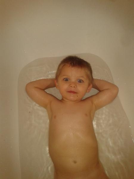Koupaní maly miluje (hlavne vodu všude mimo vanu), nikdy treba nebyl problem s mytim vlasu. Když byl mensi, brecival, ze koupani konci. Rad radi ve vane i v bazenku (tam ma zvlastni styl koupani - sedi nebo lezi, smeje se a placa sebou ze strany na strany, dokud si vse nevycaka). Při koupani rad myje vanu a hraje si všelijakými vodnimi potvorami (takze lachtan by se do sbirky hodil 😀 ), vodnim mlynkem, kelimky nebo kachnami - ted je hitem z kachnicky vystrikavat vodu na mamu (na stenu nebo do vany je to preci nuda).