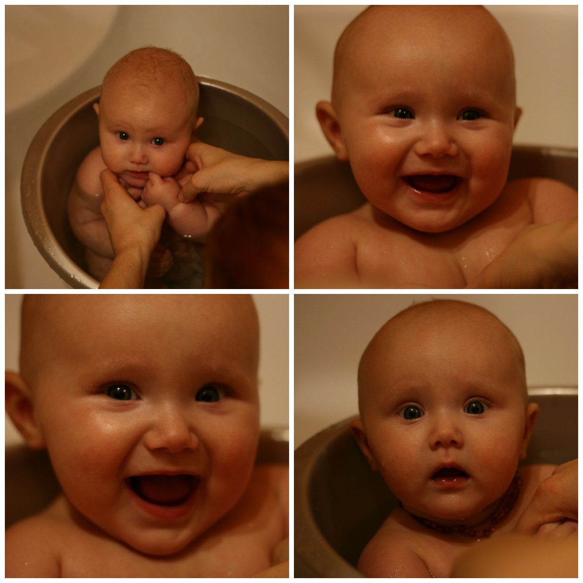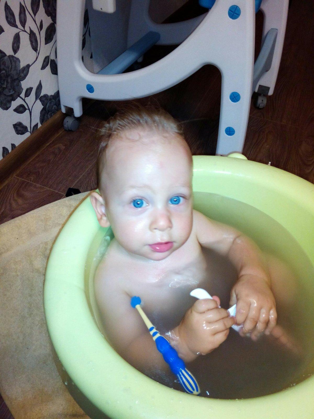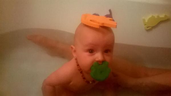 Od narození vodu miluje, do 8 měsíců se koupala v kyblíku, pak už dala přednost velké vaně a spoustě hraček (lodičky, kalíšky s vodou..). Koupu buď já, tatínek nebo babička s dědou, je jí to víceméně jedno, z vody nechce téměř nikdy ven.