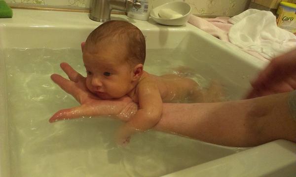 Naše holčička miluje vodu a koupání, ráda kope nožkama a cáká kolem. Holčička se narodila předčasně a byla malá, tak koupala jen maminka. Tatínek se totiž koupat bál. Ale už povyrostla, tak taťka už začal koupat sám. Hračky do vany už máme koupené a připravené.