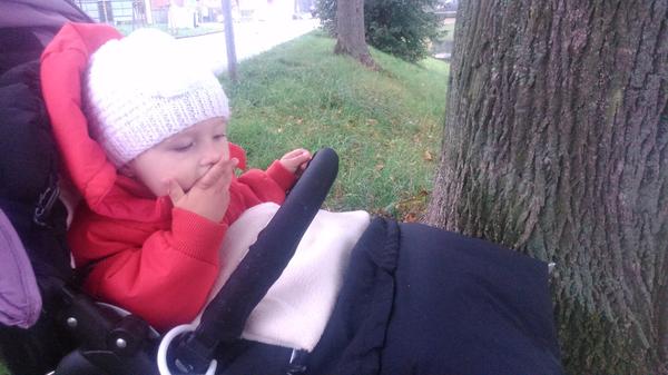 no docela jsem se těch prvních plískanic bála, Alžbětka strašně nesnáší to oblékání do více vrstev, ale jakmile je v kočárku a jedeme, je to super. V tomhle chladnějším počasí spí v kočárku jak dudek a dokonce vydrží chvilku i zaparkovaná 😀
