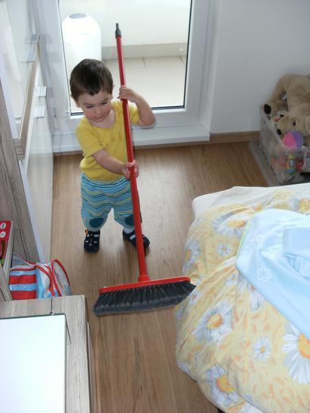 Tak Kristianek mi pri uklidu skodi, ale snazi se... 😀 Je mu 13 mesicu, porad neco utira, kdyz ma v ruce mop, tak vytira, s vysavacem taky umi... 🙂 Prekvapuje me, jak snadno neco okouka a presne vi, s cim se jak zachazi... 🙂 Nejhorsi je s nim utirani prachu... Porad musim mit kybl nekde ve vysce... Jednou mi ho rozlil po celem pokojicku, nateklo to pod vestavenou skrin a to byla "radost"... 😀 Od te doby si davam majzla, je to vsetecka... 🙂