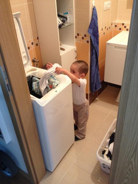 Vašík mi pomáhá s vysáváním, s dáváním prádla do pračky a také se mnou věší prádlo
