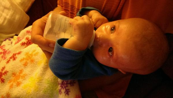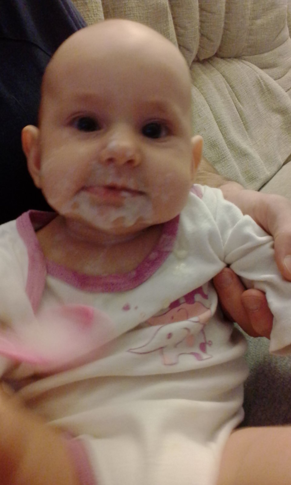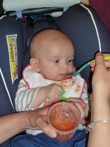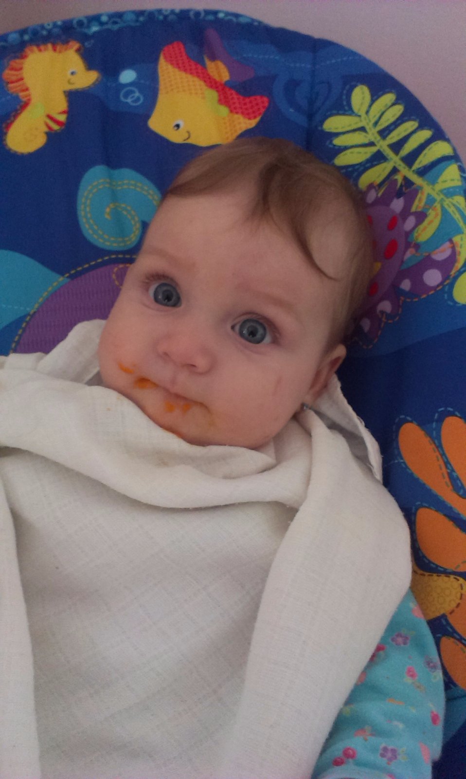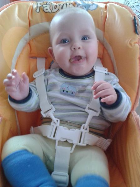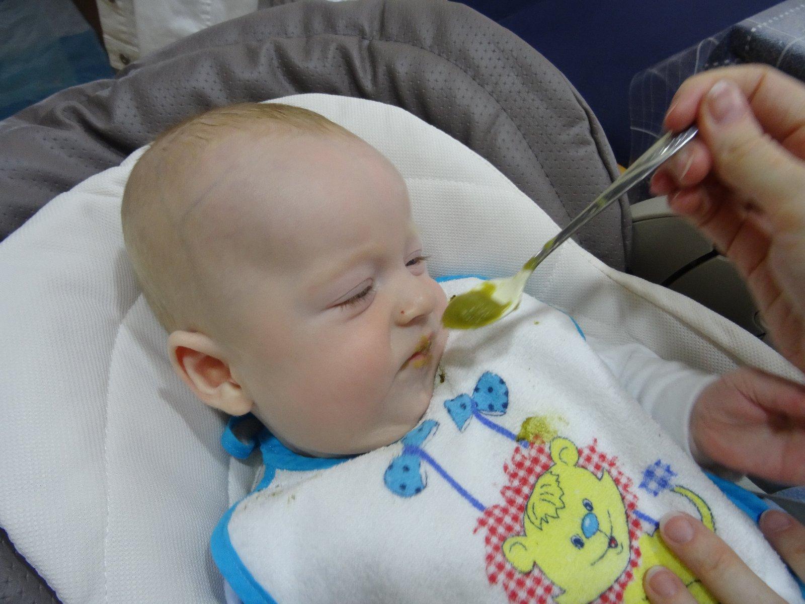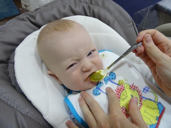 Náš Kryštůfek (4,5 měsíce) zkouší první lžičku brokolici. Ta bohužel neprošla 🙂 Až druhý den mrkvička 🙂