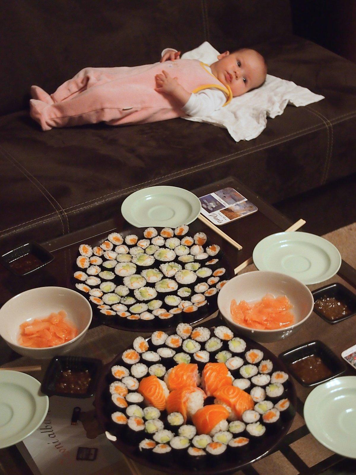 Když fotku s jídlem, tak fotku s jídlem! Fotit, jak naše dítě dlabe cokoliv kromě jídla Hipp, mi přijde nefér vůči zadavateli soutěže, v našem rodinném archivu jsem proto našla fotku dcerky s jídlem, která nenahrává opravdu žádné konkurenci. S láskou dělané sushi od našeho tatínka 🙂 Na výhru to není, je tady spousta jiných krásných fotek, ale třeba se nad tím někdo pousměje. A o úsměv jde v životě na prvním místě 😉 Takže hezký den přeju 🙂