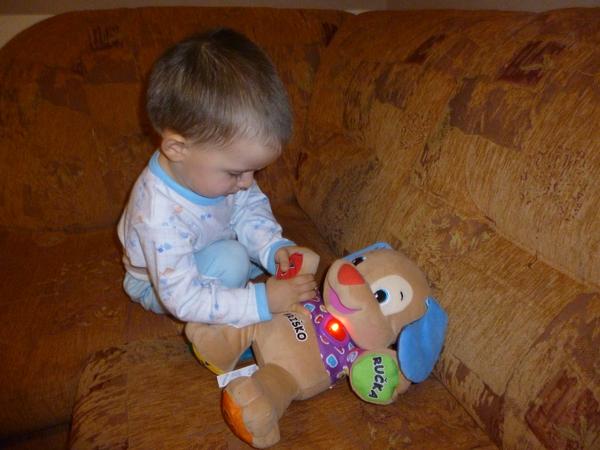 protože mám děti 2 tak 2 fotky ...u syna jeho oblíbená hračka už hraničí s manií a to jsou vlaky, vláčky a jiné dopravní prostředky a pak samozřejmně nezbytný plyšáček usínáček