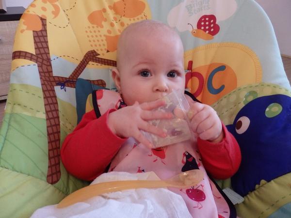 Právě pije Hipp Bio Combiotik 1 🙂 a trhá rekordy v rychlosti vypití lahvičky