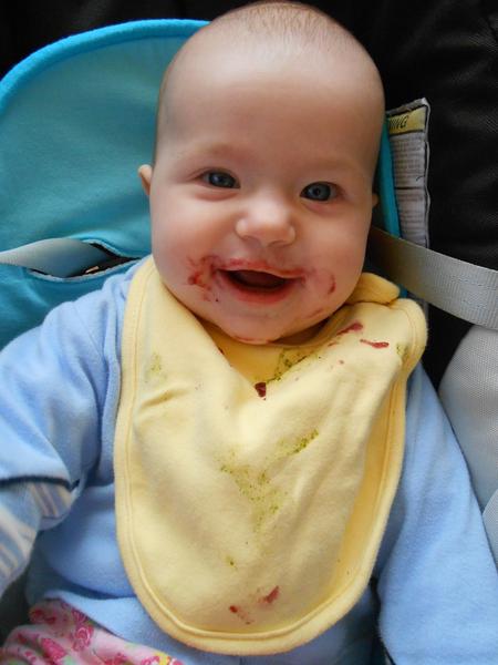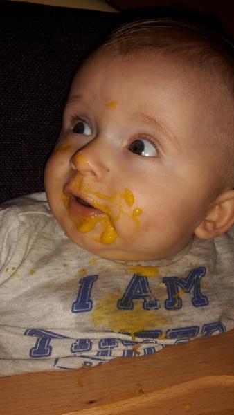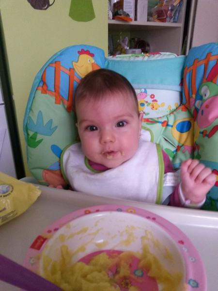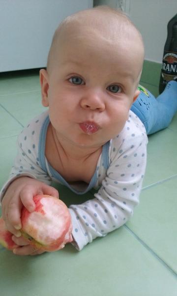 Z Hippu má Terezka nejraději švestkovou přesnídávku, protože oproti většině ostatních v ní nejsou jablka, po kterých ji bolí bříško. Tu si dává s chutí skoro každý druhý den 🙂 A masozeleninové příkrmy si sama bere ze skříňky (pokud ji zapomenu zavřít) a volá "ham, ham"
