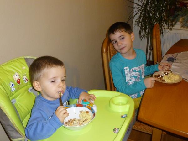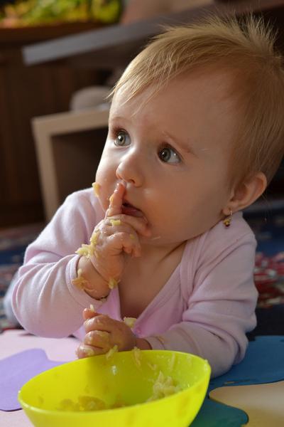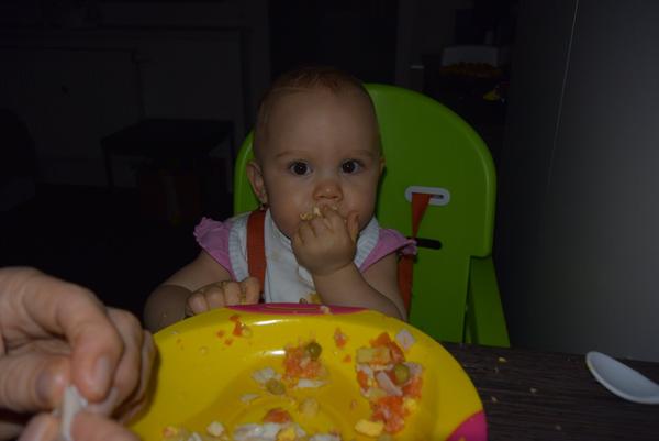 Baští naprosto všechno, co je jí naservírováno. A prej to občas servíruju blbě, tak to vezme do svých rukou.