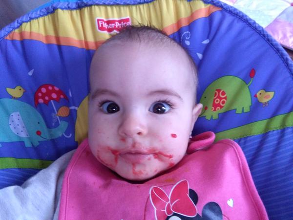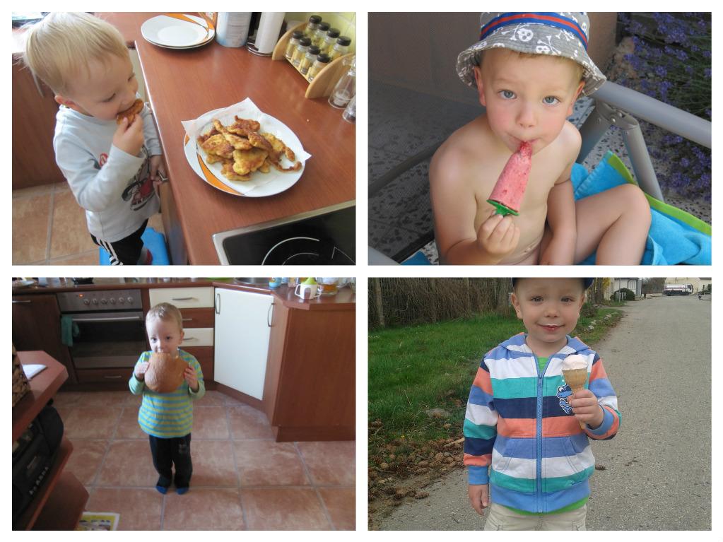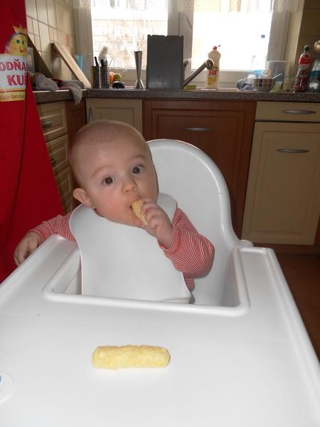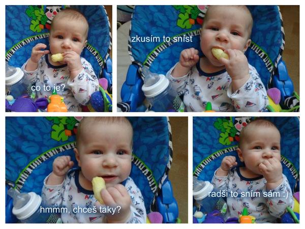 Starší brouček mi nejraději ujídá v kuchyni co je zrovna na dosah, nejradši frčí na řízkách, rohlíkách a samozřejmě na sladkostech, v létě bez zmrzky ani ránu 🙂 A mladší se i v 6měsících nejraději drží svého "vemínka" a je spokojený s mlíčkem od mamky, zatím všechny mé pokusy dostat do něj něco jiného úspěšně bojkotuje..na fotkách je neúspěšný pokus s brokolicí 😀