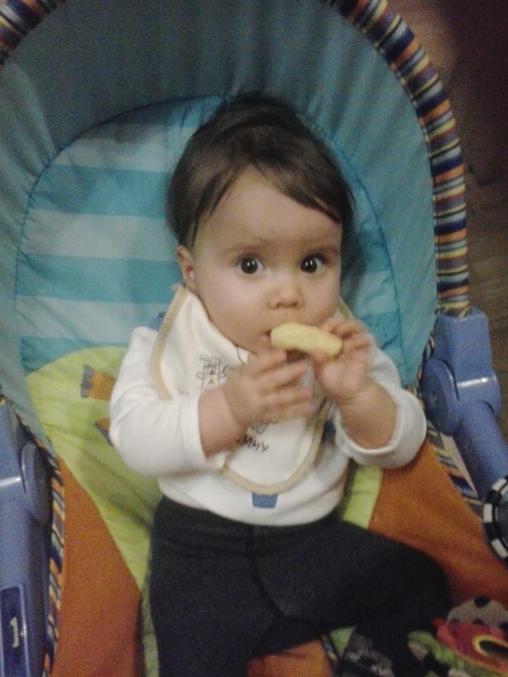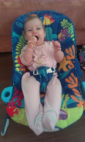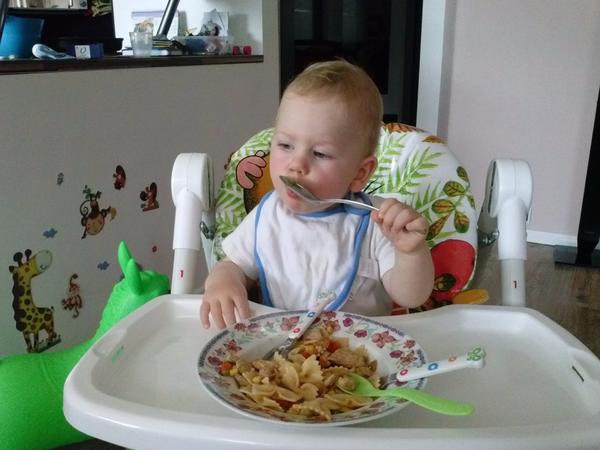 Nas Marco prichyteny pri cine s kukuricnou chrumkou 😀 Inak nie je vobec vyberavy a spapa vsetko, co mu dam, miluje ovocie aj zeleninku - najviac hrusky, cukinu a zelene fazulky 🙂 Nepohrdne ziadnym maskom, rybou, cetovinami, vlastne nicim 😀 Takisto miluje vsetky Hipp ovocne vyzivy, ktore v tychto mesiacoch dostava kazdy den, vdaka comu ma pestru stravu 🙂 Takisto ma rad Hipp zeleninove a zeleninovo-masove prikrmy, ktore vzdy spapa do posledneho susta 🙂 Je to proste nas maly - velky jedak 🙂