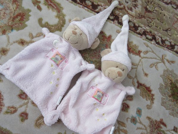 Představuji Vám, našeho muchlíka, kterému naše Anička říká Maši... Je to právoplatný člen naší domácnosti, kterého Anička nosí všude s sebou... Maši s námi jezdí na dovolené, do obchodu, na hřiště, na návštěvy, k doktorovi, do zahrady, chodí se s Aničkou koupat, chodí s ní i spinkat... Když se bojí, něco ji bolí, je nemocná, jde spinkat, potřebuje Mašiho... Musíme na něj dávat pozor, protože kdybychom ho ztratili - no nedokáži si to domyslet 🙂