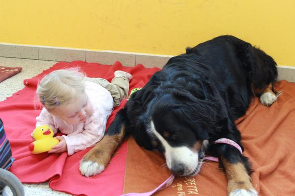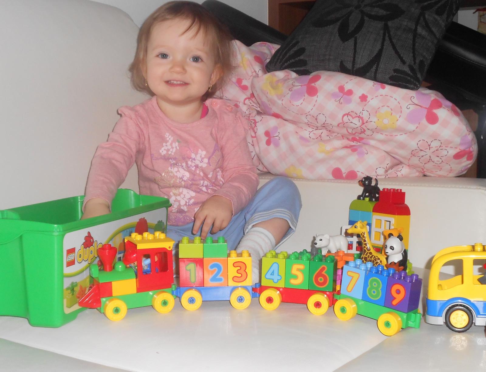 Naše Terezka a její nejoblíbenější hračky - gumová kačenka, která s námi musí všude i na výlety a naše psisko, které si jí hlídá a tudíž je také všude po ruce🙂 - to je snad úplně nejlepší zábava na světě, lepší, než všechny hračky dohromady - dobře se s ním muchlá, dá se po něm válet i se za ním lézt, hází mu zbytky jídla, které už nechce atd.🙂