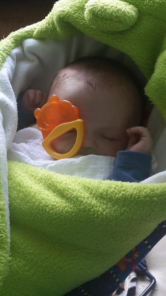 Ahoj jmenuji se Jeníček,narodil jsem se na Štědrý den 🙂 jsou mi 4 měsíce 🙂 sice umím říkat jenom Ea ea euuu hůů, ale už si moc rád hraju ... ručičkami a pusinkou poznávám okolní svět 🙂 má nejoblíbenější hračka je kousátko a chrastítko v jednom .jmenuje se ,,Chyť " to moje maminka vždycky říká , když mi ji podává ...jednou jsem si po krmení hrál a hrál až jsem únavou s ,, chyť " usnul velice zvláštním způsobem 🙂 a máma? Taky musí vyfotit všechno! 🙂
