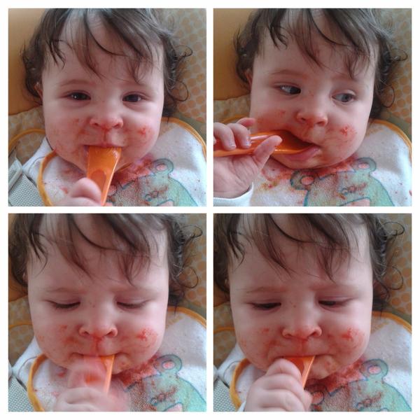 Úplně první lžička, dýně od Hippu. Máte to dobré, mňam 😉