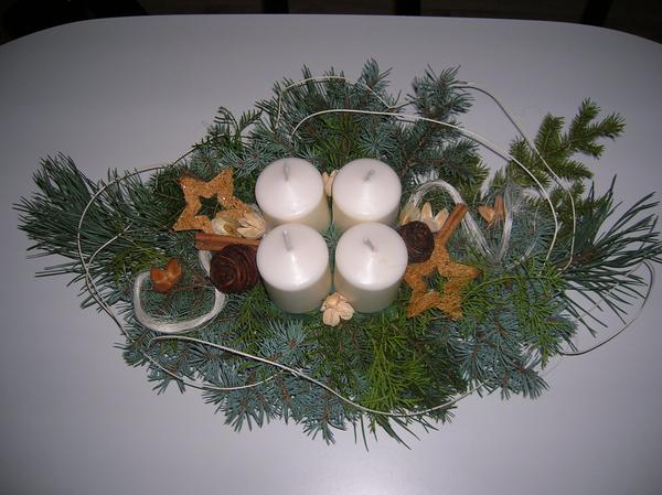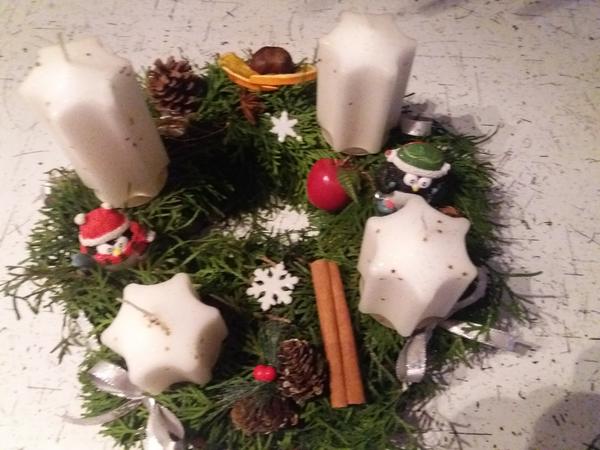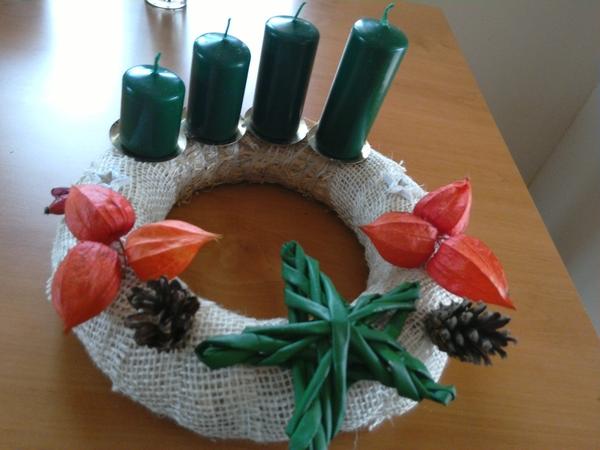 Okolo svíček je mech,ale není na fotce vidět,břečťan je živý,původně jsem chtěla dát větvičky z jehličnanů