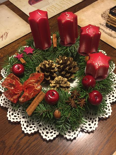 Tvořím si sama každý rok. Jen mě vždycky štvalo, že jehličí uschne a opadává, tak jsem si pořídila takový keramický, kam můžu dát vodu a jehličí vydrží. Poslední roky jsme měli toto a letošní variaci ještě nemám, budu tvořit v sobotu🙂