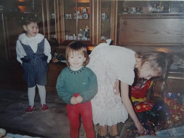 Na Ježíška jsme se vždy moc těšili!! Vánoce cca v roce 1989 se sestrou (naše maminka fotí a říká: "Dáte si pusu?") 🙂 .... A moje sestra to pojala ve velkém. Když pusu, tak pořádnou 😀 😀. A Vánoce v současnosti? Na ty se těšíme snad ještě víc, než když jsme byli děti. S manželem a s naší dcerou Nikolkou <3